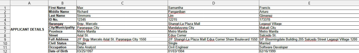 2. $header_column_index - Since there may be content before the header, an example of this is available in the sample file linked in the article, this parameter is needed to indicate to the system where the headers are. The value of this parameter is going to be the basis where the function will start when it goes through each of the spreadsheet's columns.